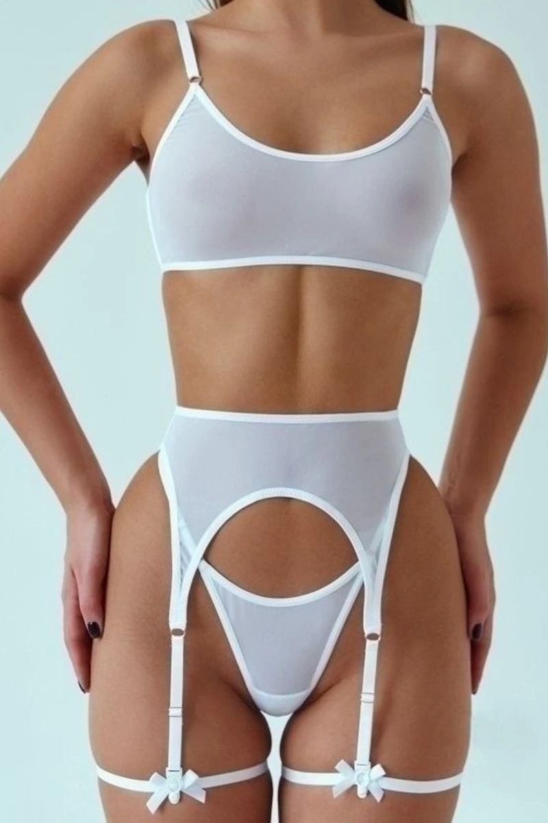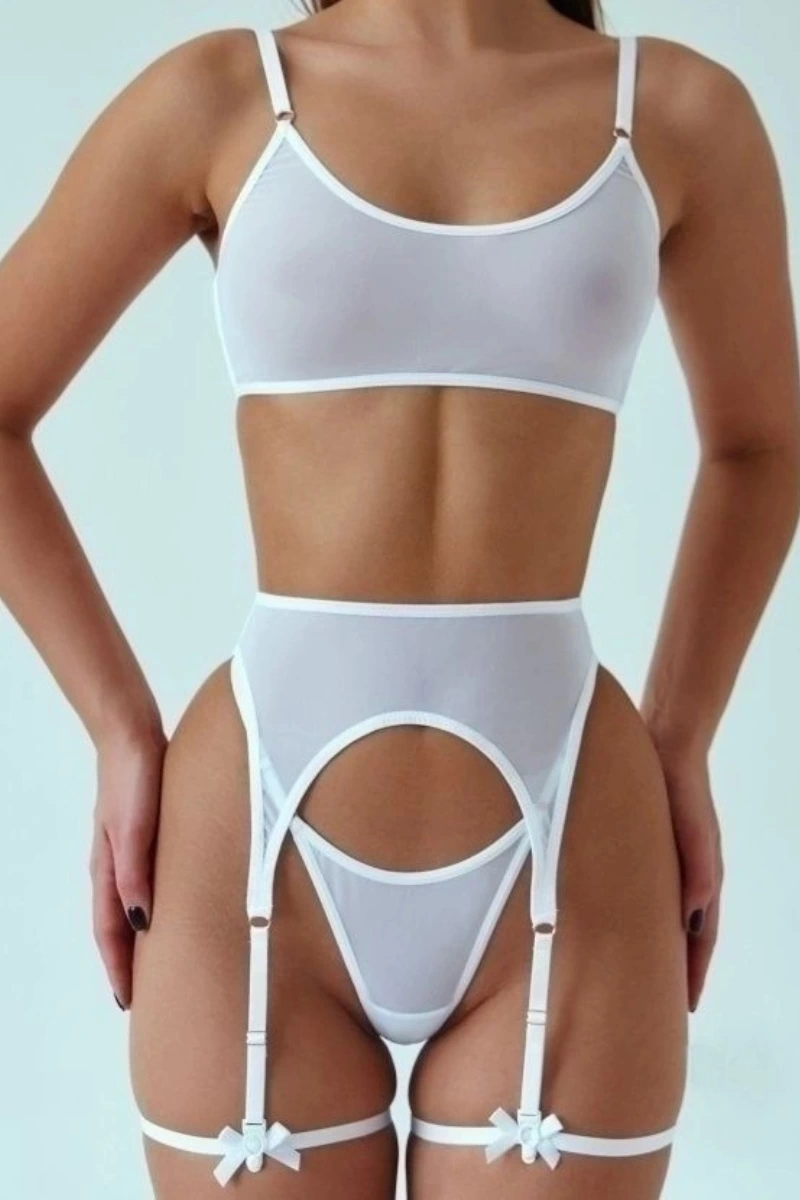 Bağcıklı Yüksek Bel Jartiyer Set,Seksi İç Giyim Kombini