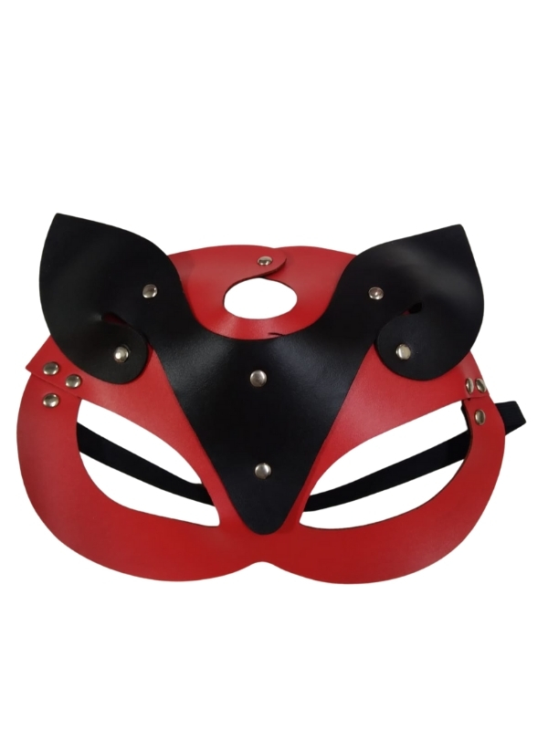Censan Deri Kedi Kız Maskesi Siyah Kırmızı