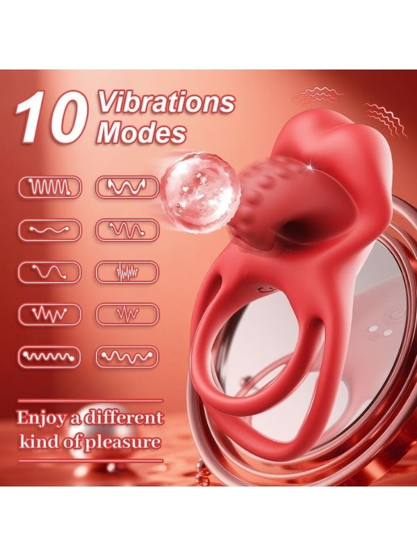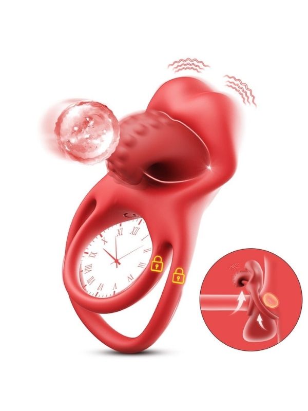 Censan G-Noktası Uyarımlı Dönen (swing) Haraketli Dilli Titreşimli Penis Halkası – Çift Yönlü Zevk