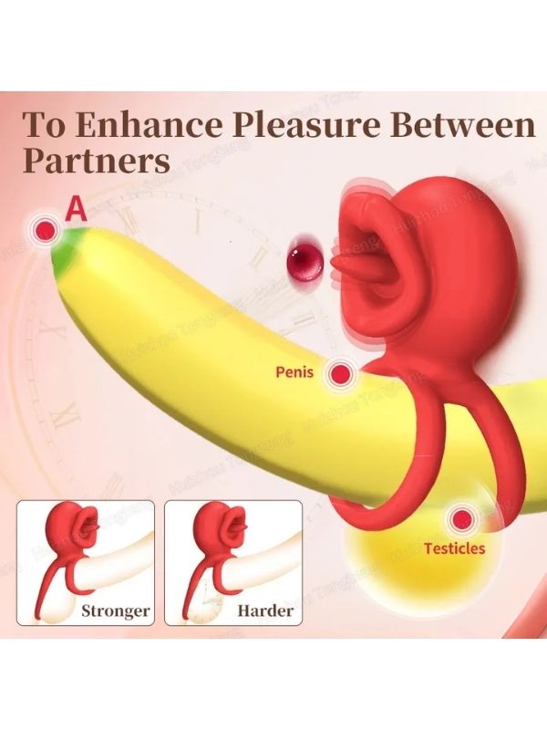 Censan G-Noktası Uyarımlı Dilli Titreşimli Penis Halkası – Çift Yönlü Zevk