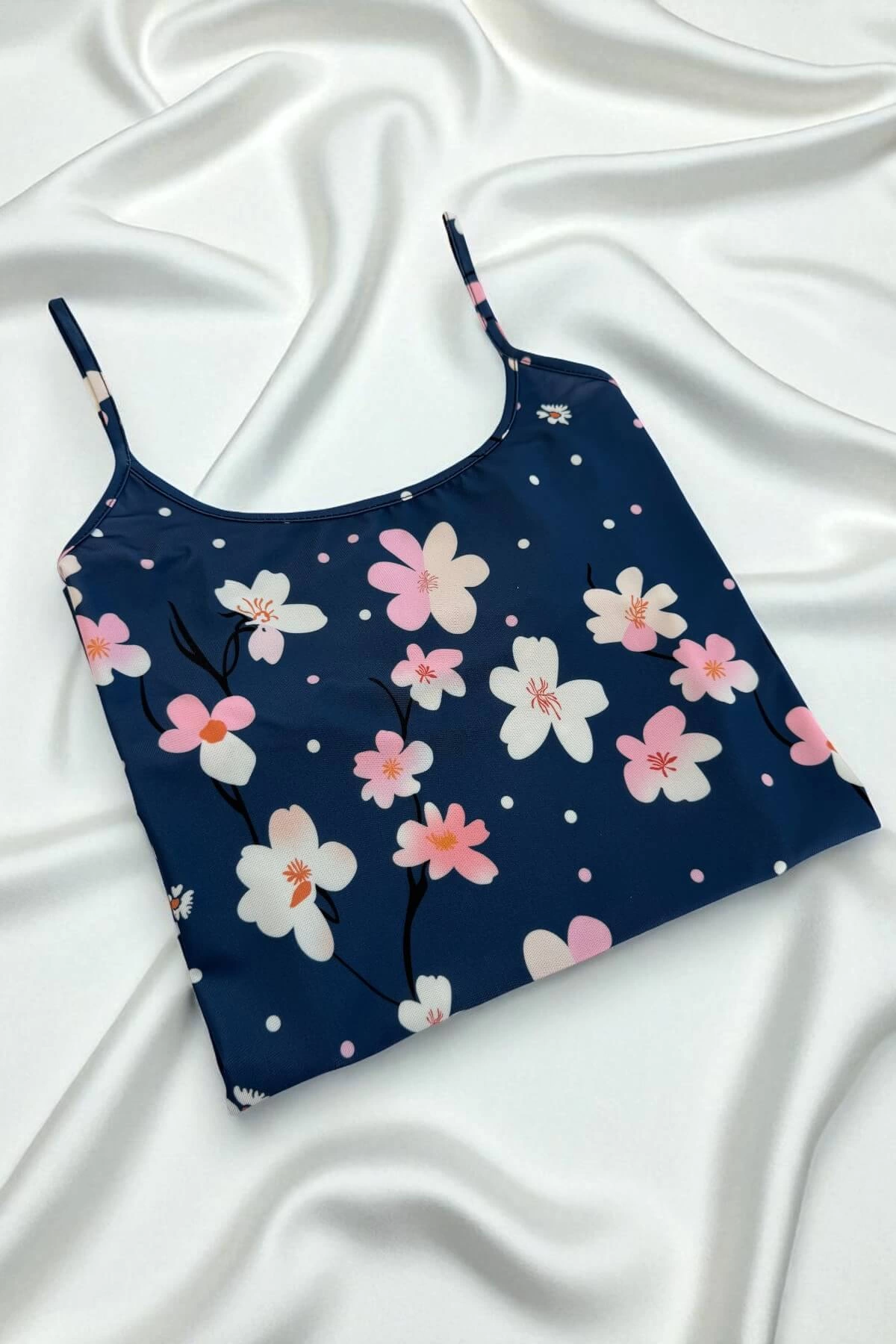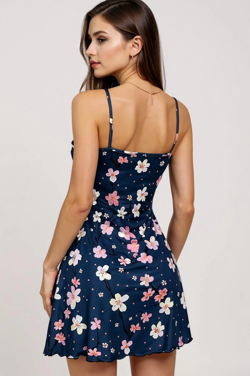 Çiçek Desenli Mavi Askılı Gecelik