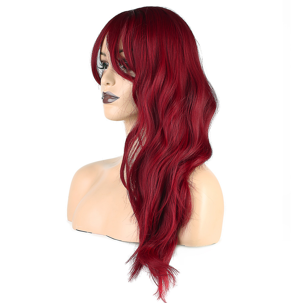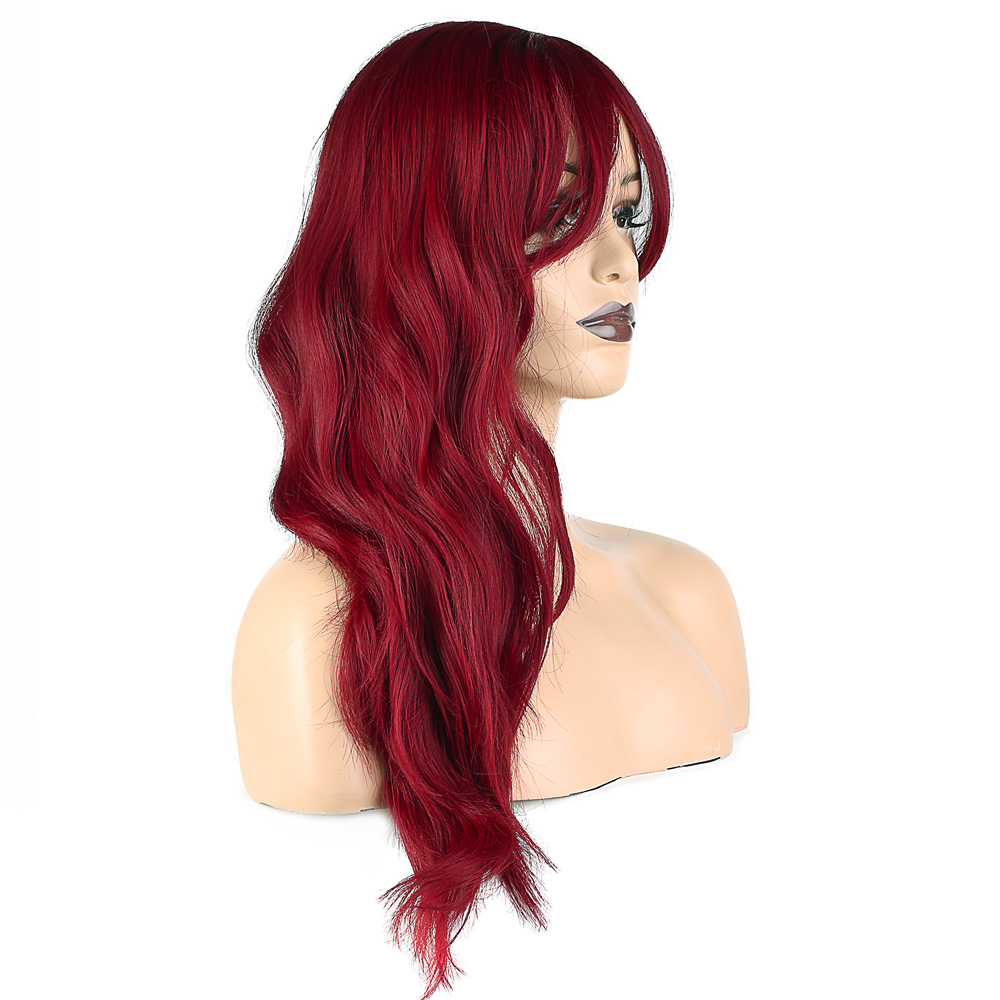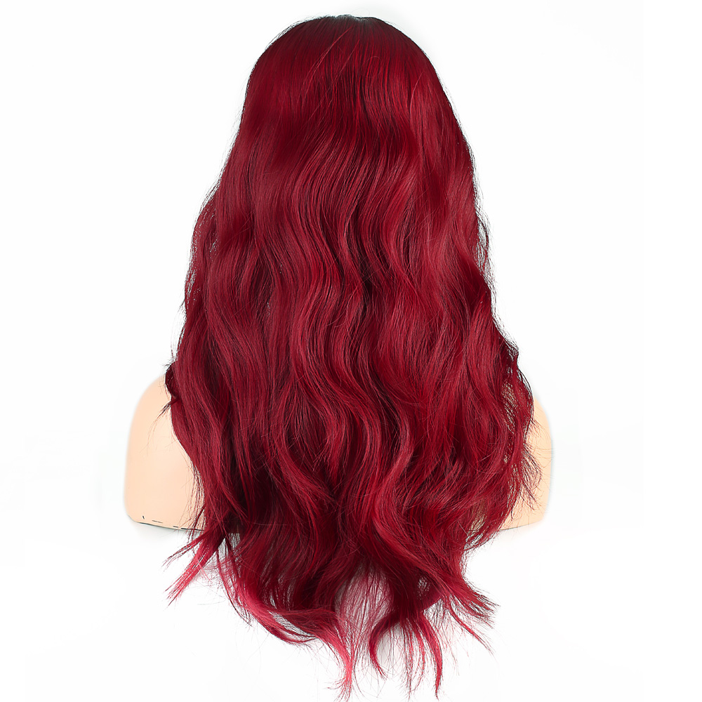 Kahküllü Uzun Dalgalı Fiber Sentetik Peruk - Kızıl