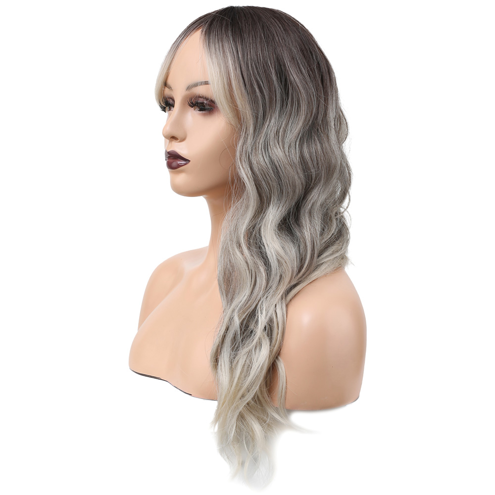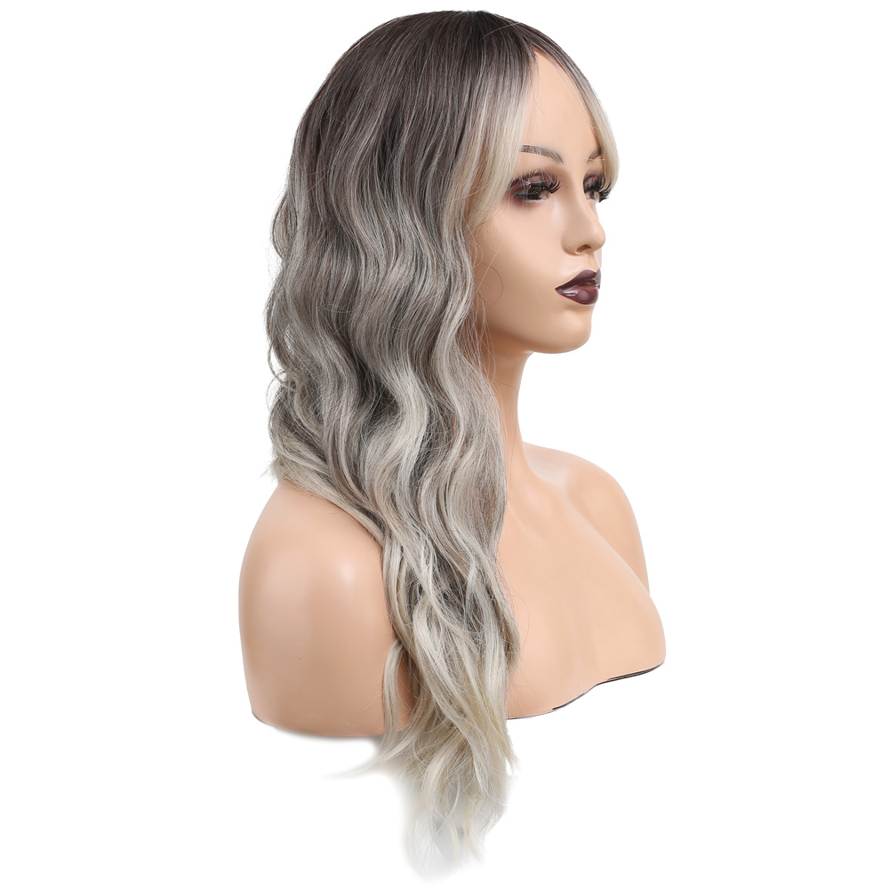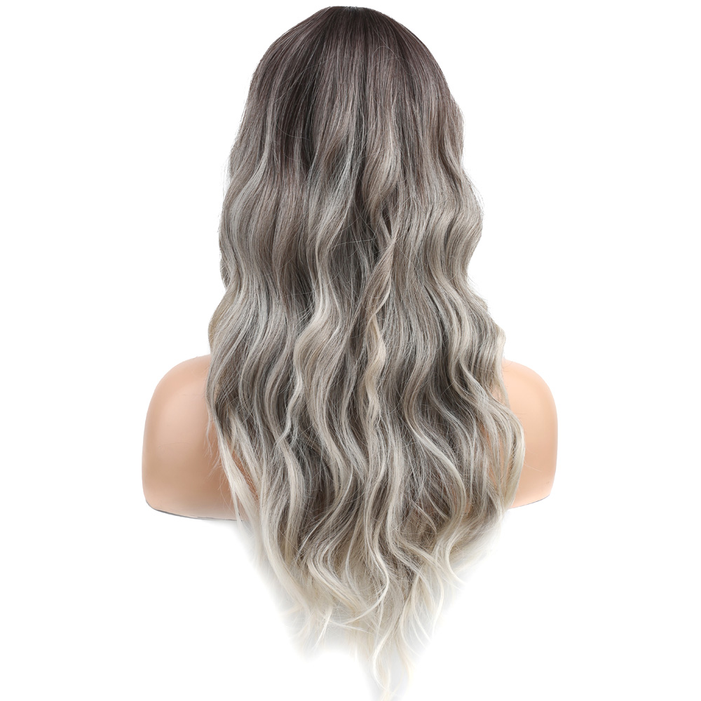 Uzun Su Dalgası Fiber Sentetik Peruk - Küllü Kumral / Beyaz Platin Ombre
