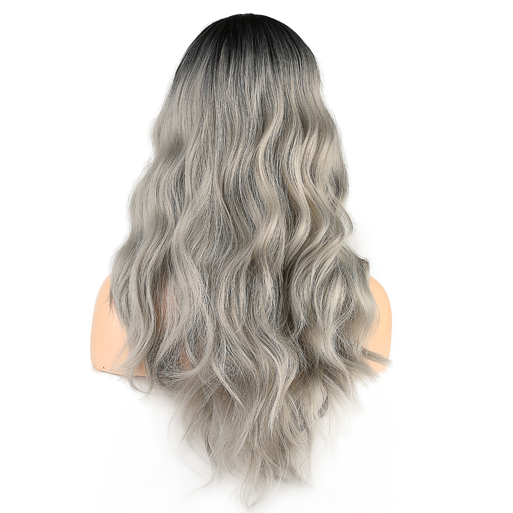 Uzun Su Dalgası Fiber Sentetik Peruk - Küllü Kumral / Beyaz Platin Ombre