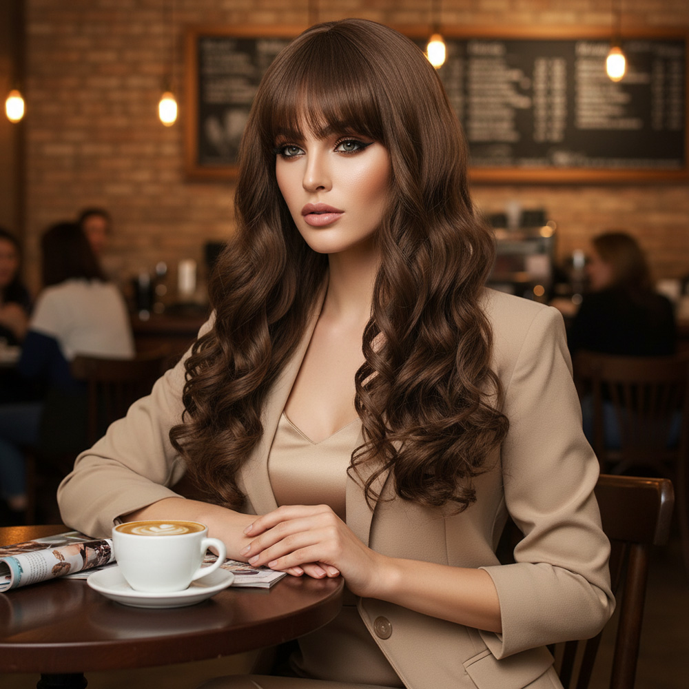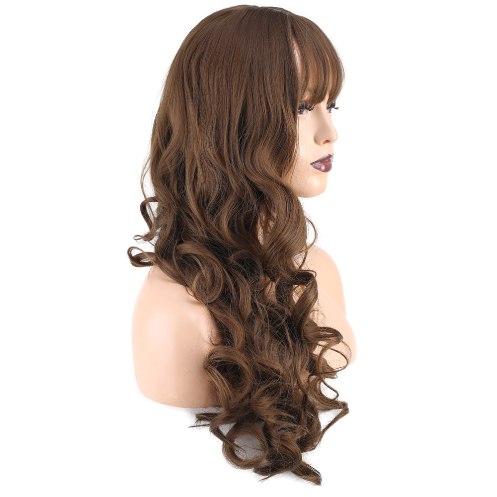 Dalgalı Perçemli Uzun Fiber Sentetik Peruk - Koyu Kumral