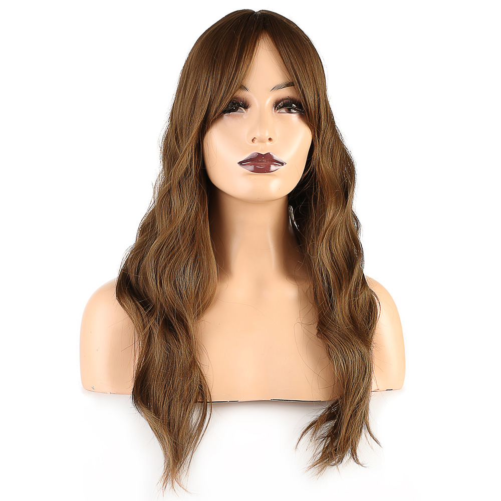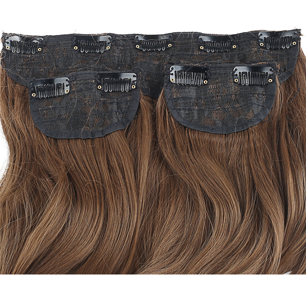 Fiber Sentetik Kabarık Dalgalı Yarım Ay + 2 Yan Çıt Çıt - Koyu Kumral Platin Ombreli