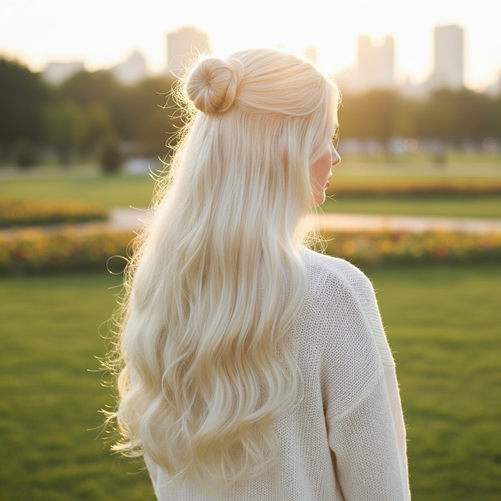 Fiber Sentetik Kabarık Dalgalı Yarım Ay + 2 Yan Çıt Çıt - Kumral Beyaz Platin Röfleli