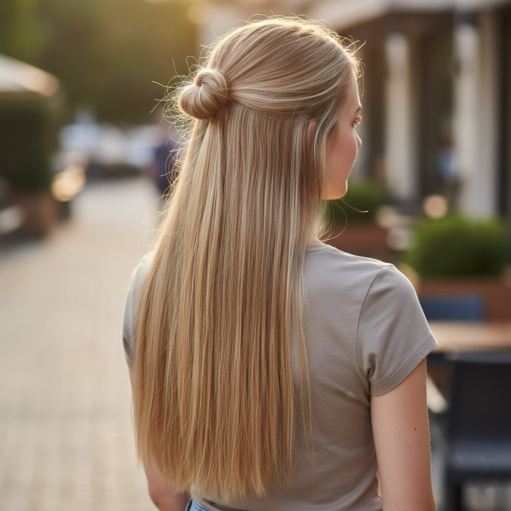 Fiber Sentetik Düz Yarım Ay + 2 Yan Çıt Çıt - Kumral Beyaz Platin Röfleli