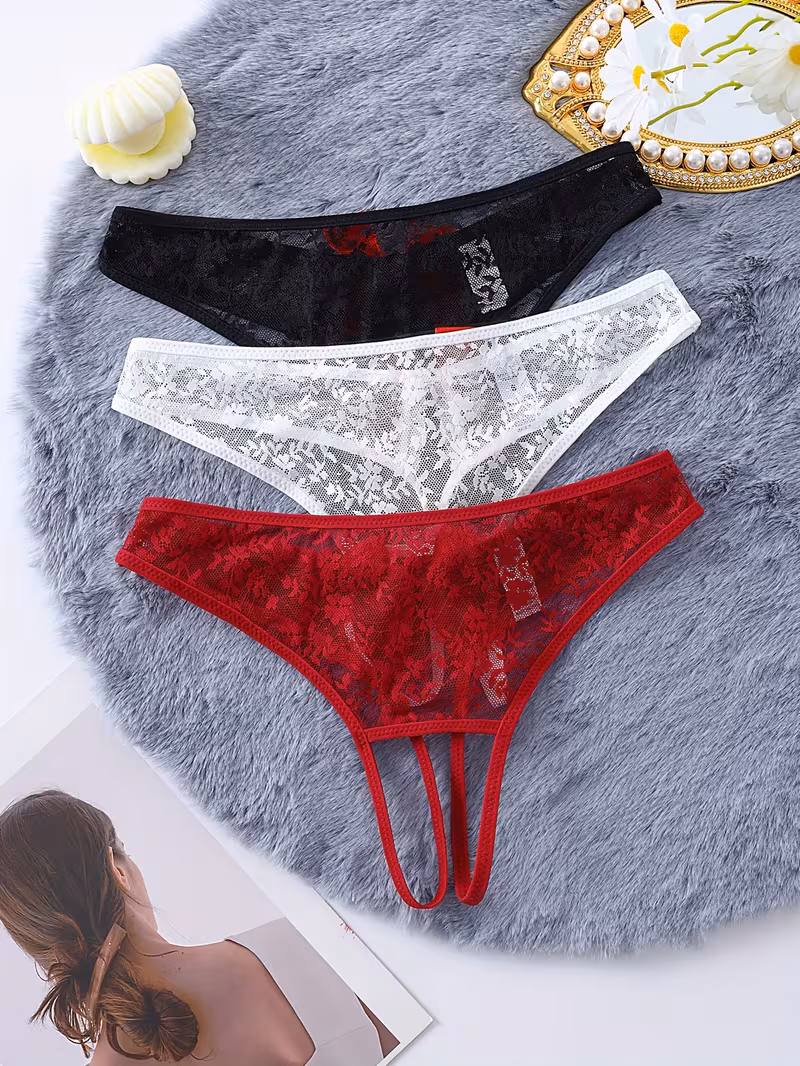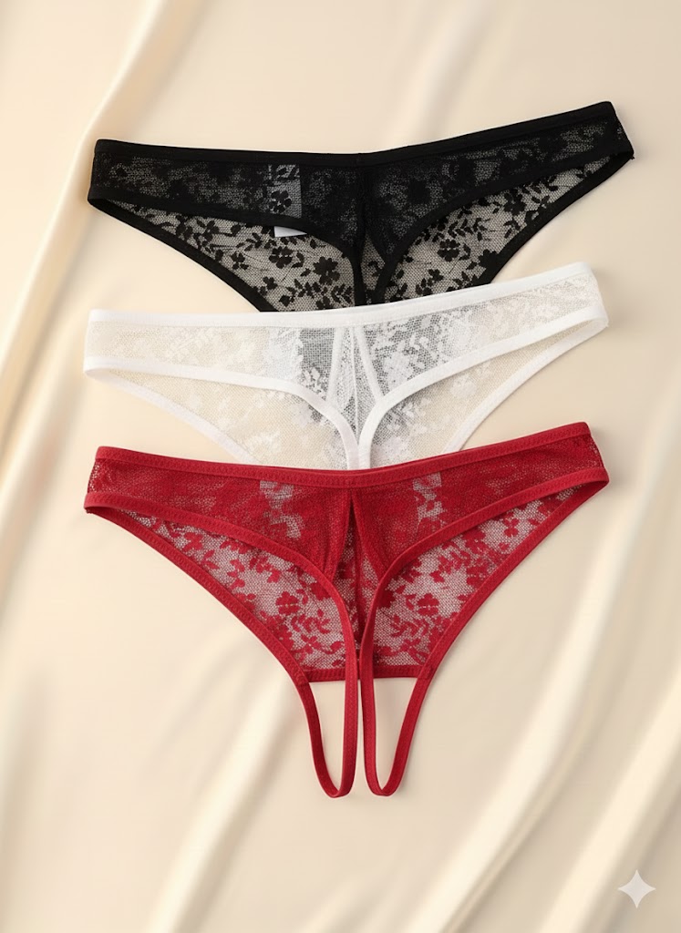Kadın 3'lü Seksi Ağ Bölgesi Açık Dantelli Tanga Seti BC0055