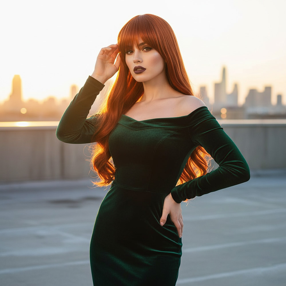 Dalgalı Perçemli Uzun Fiber Sentetik Peruk - Bakır