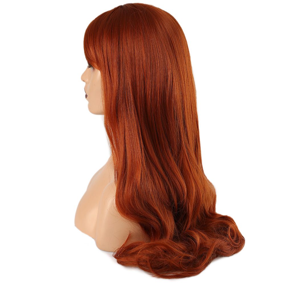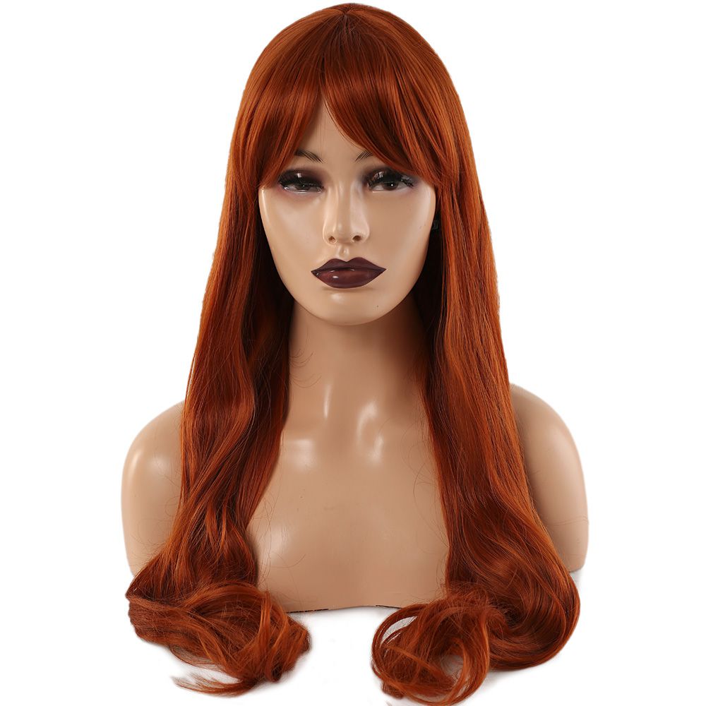 Kahküllü Uzun Dalgalı Fiber Sentetik Peruk - Kızıl