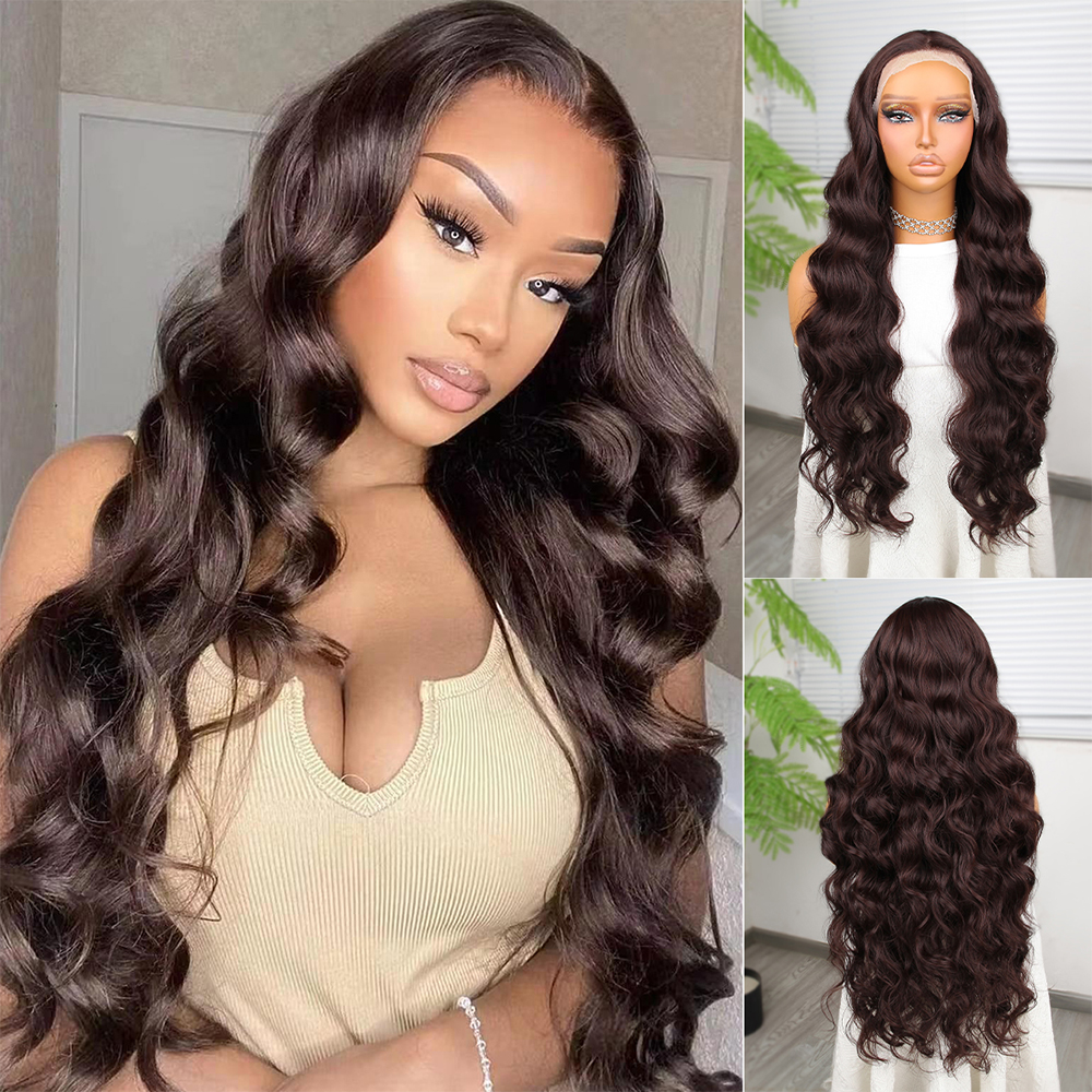 Koyu Kumral Ekstra Uzun Fiber Sentetik Dalgalı Tül Peruk