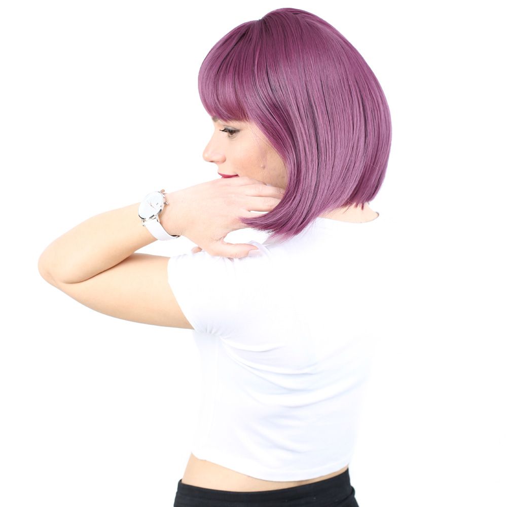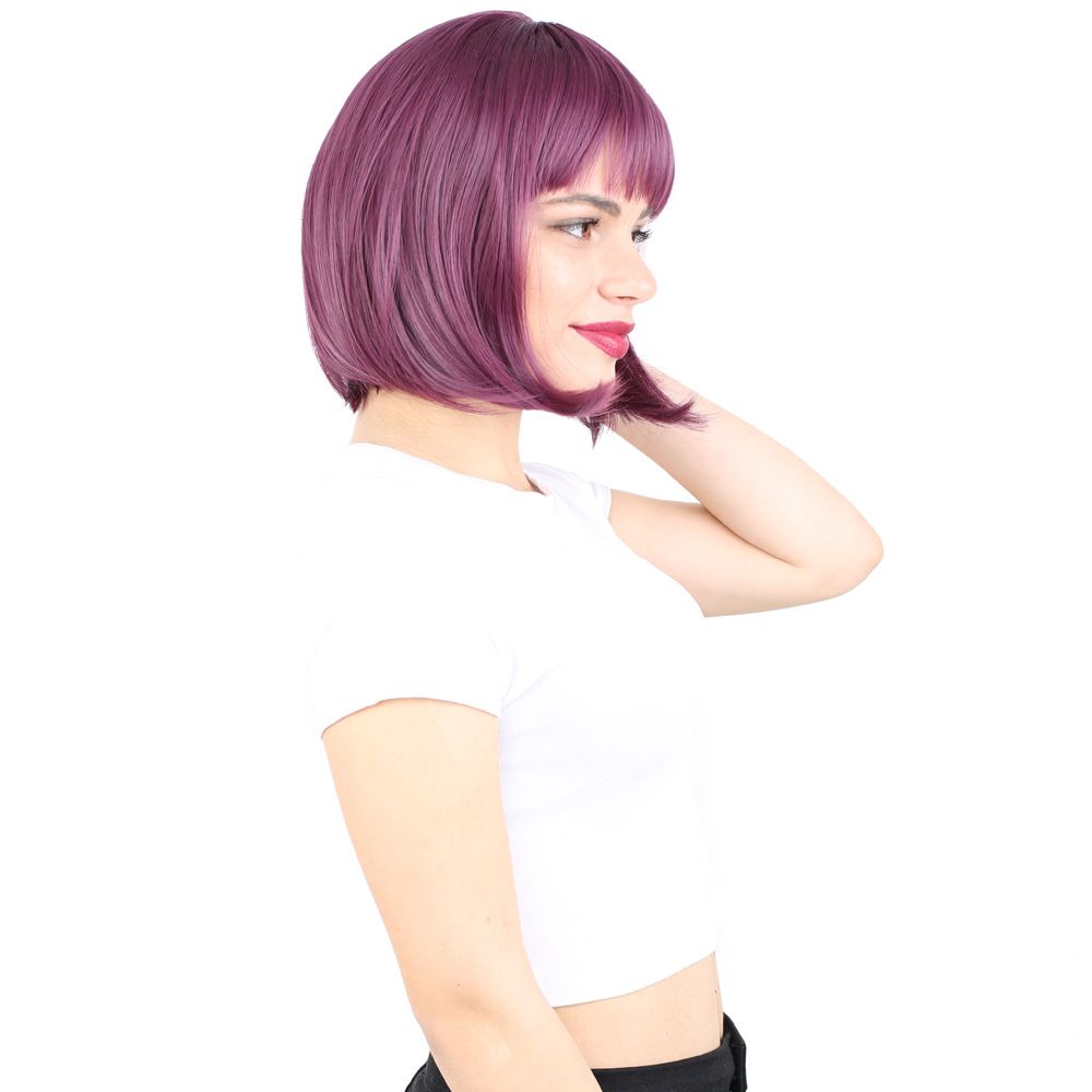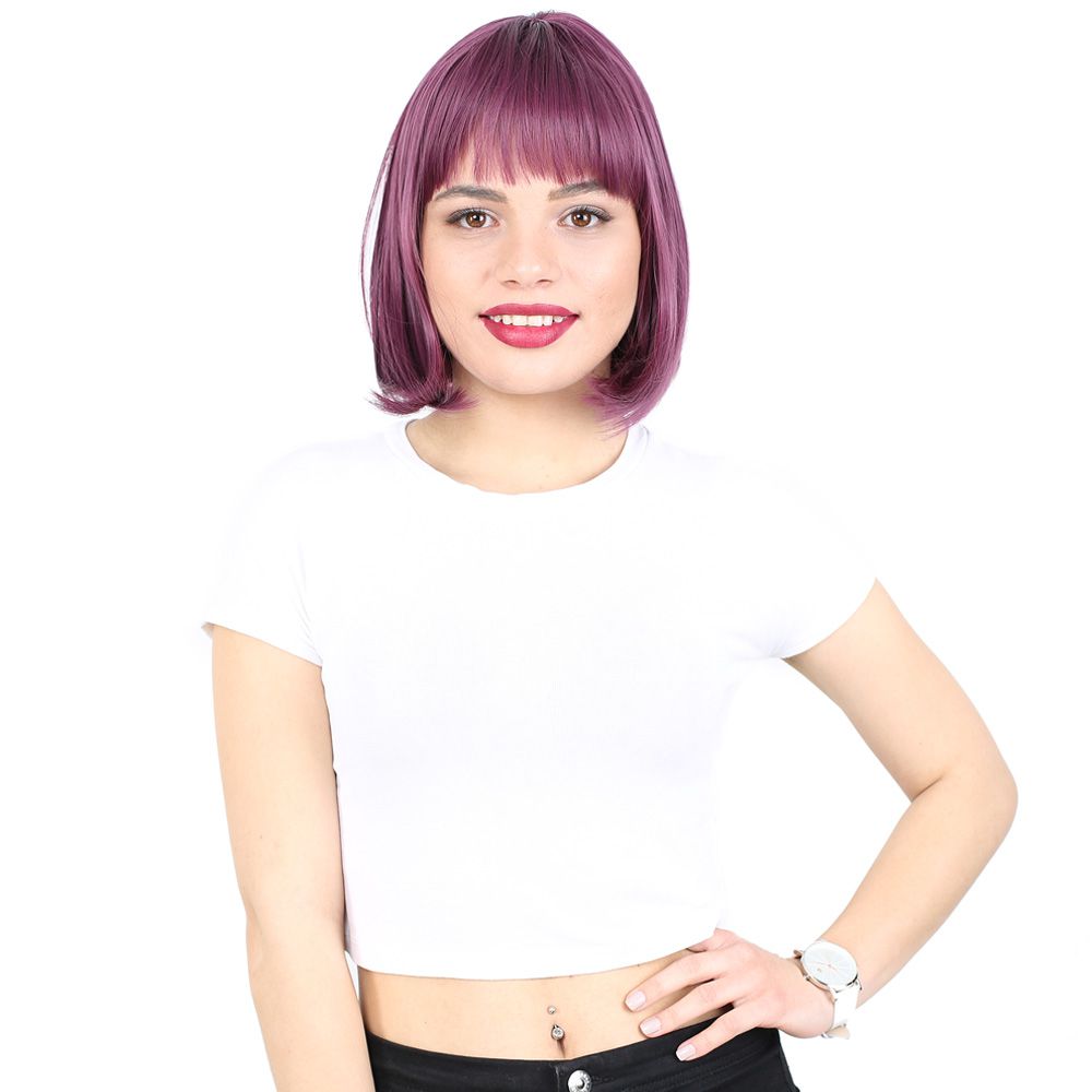 Küt Kahküllü Fiber Sentetik Peruk - Patlıcan Moru
