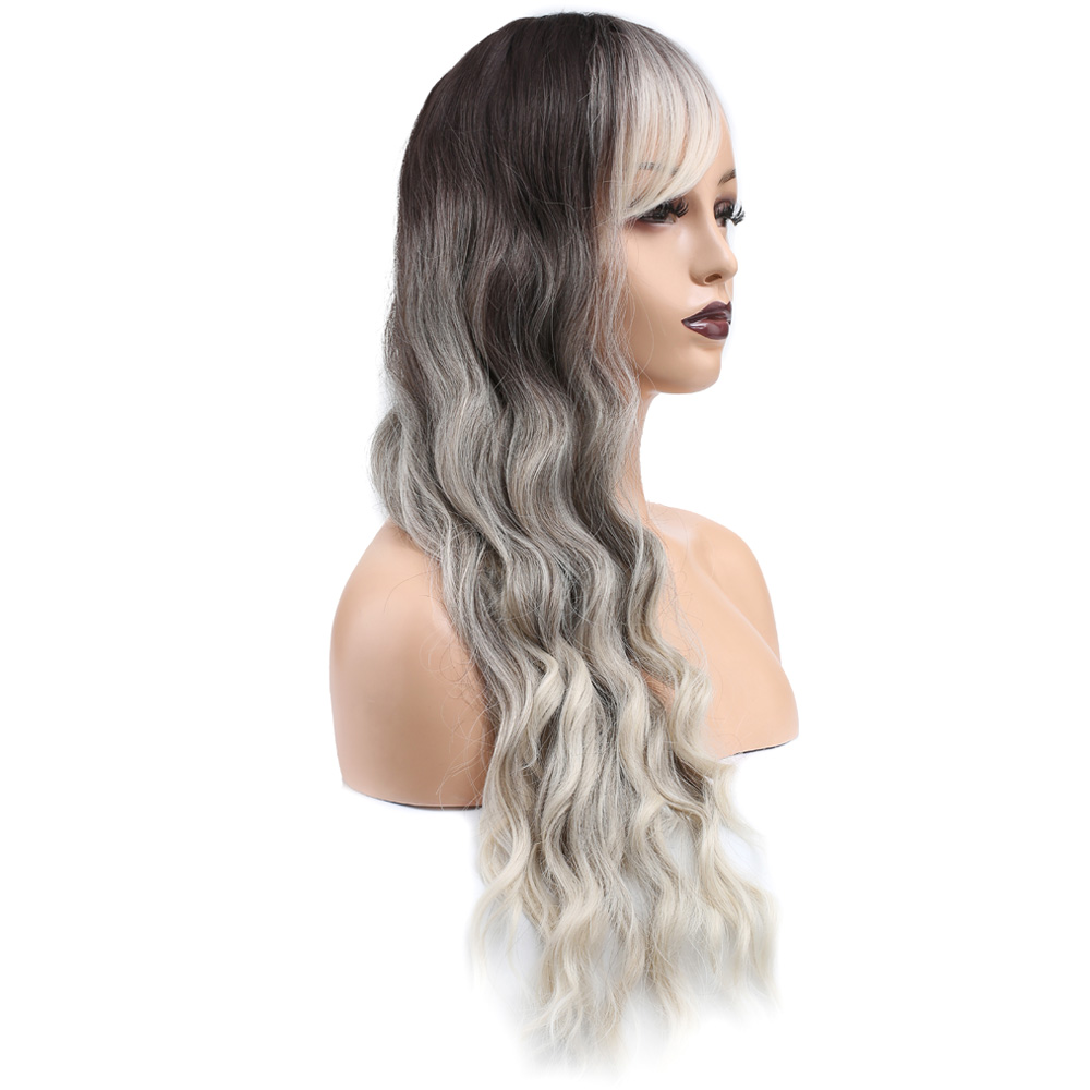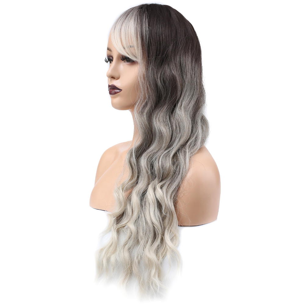 Uzun Su Dalgası Fiber Sentetik Peruk - Küllü Kumral / Beyaz Platin Ombre