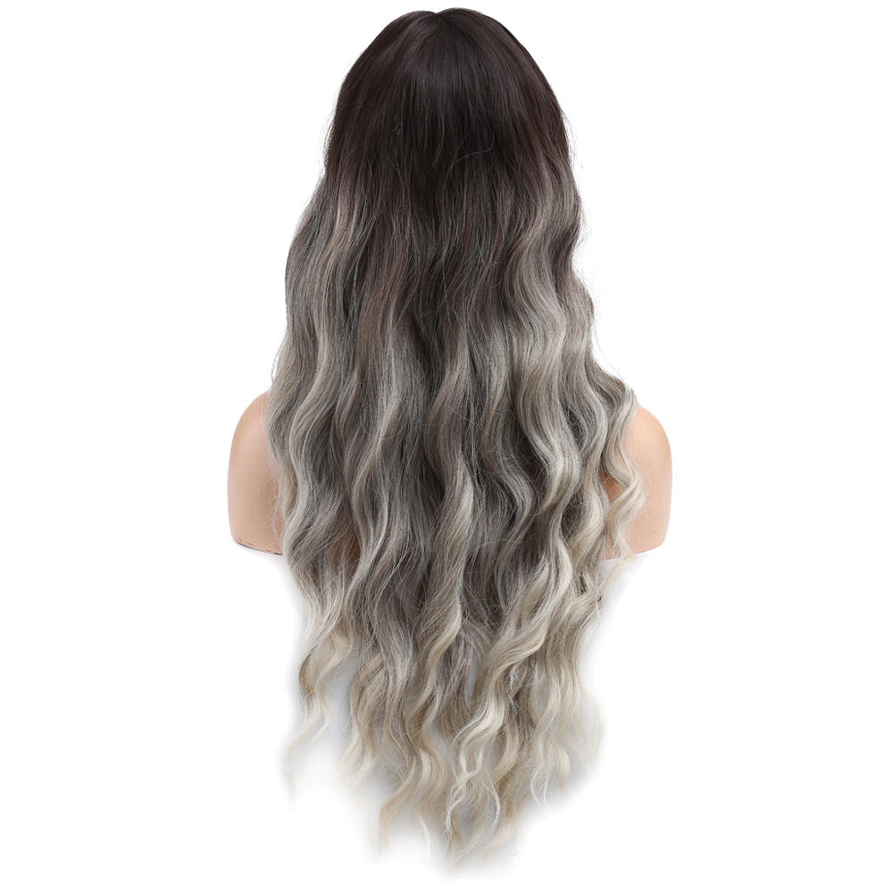 Perçemli Uzun Su Dalgası Fiber Sentetik Peruk- Ombre ve Röfleli
