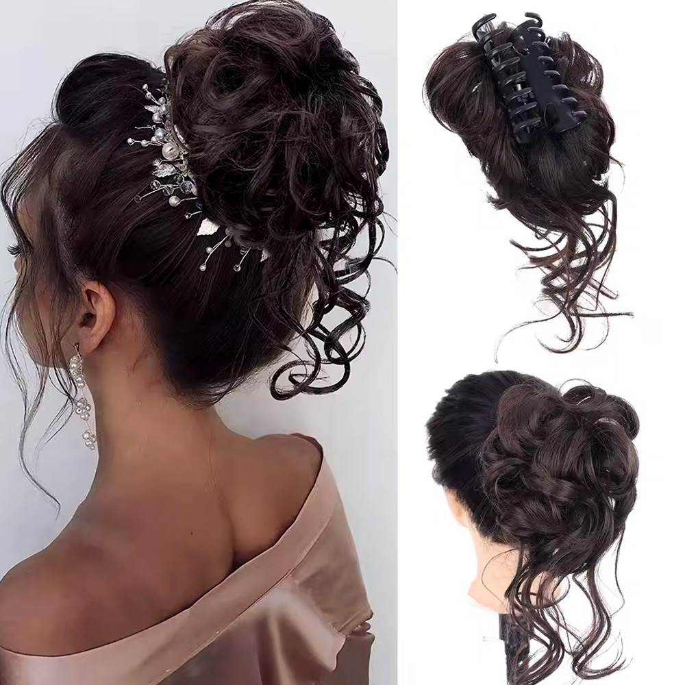 Tokalı Kuyruklu Dağınık Topuz - Kahve Karamel