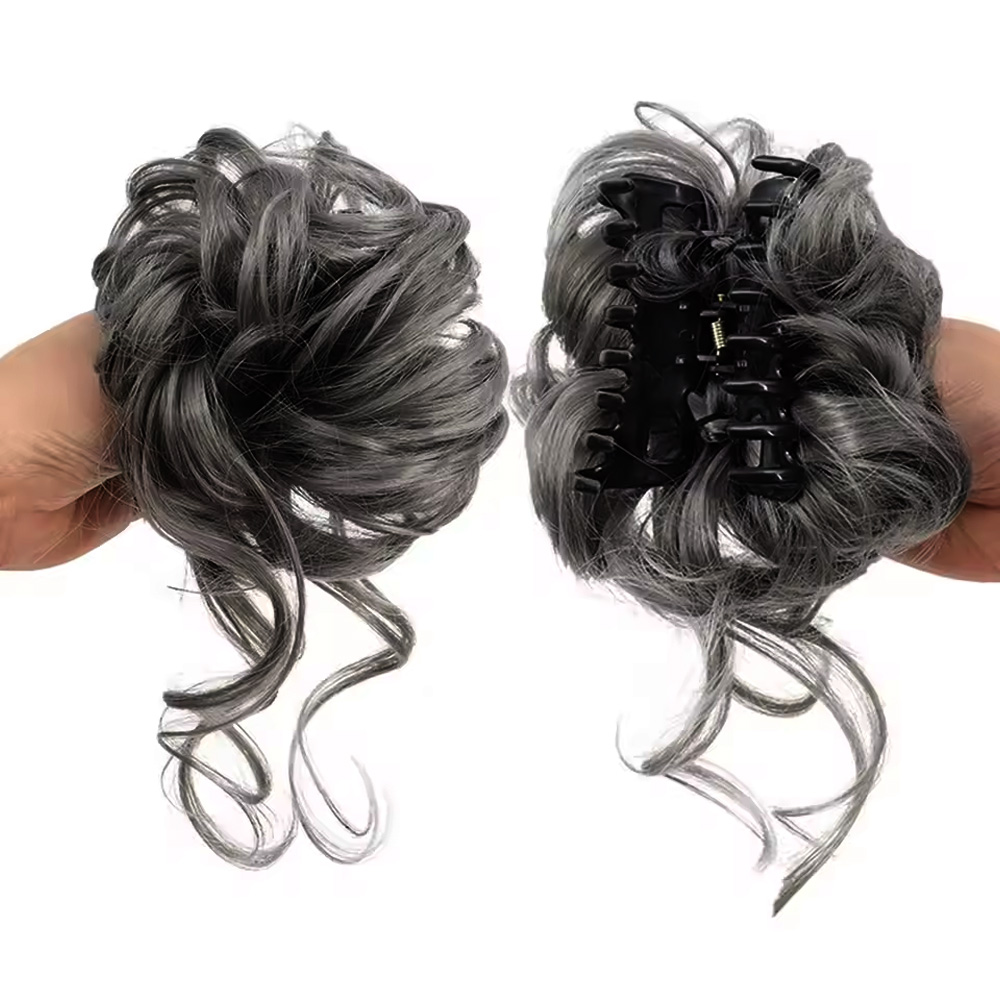Tokalı Kuyruklu Dağınık Topuz - Açık Gri