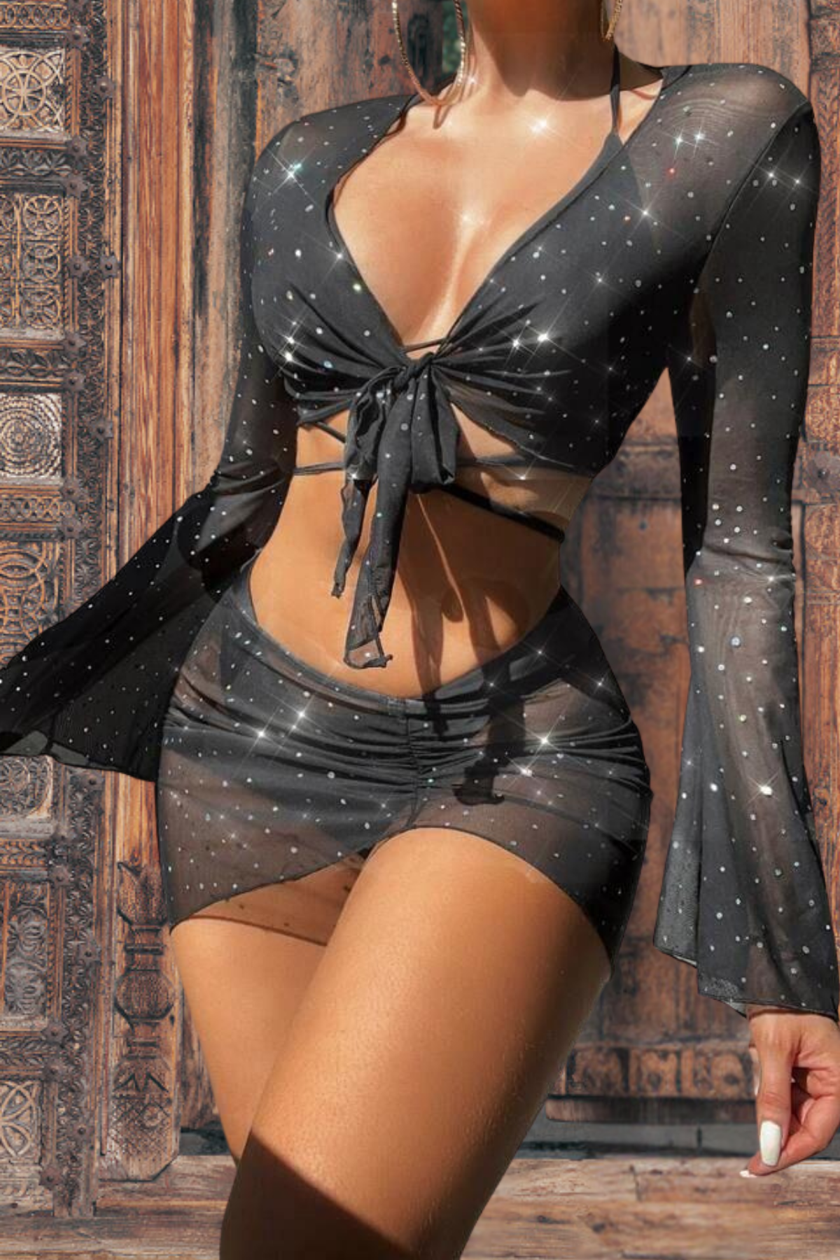 Fantezi Seksi Zincirli Kelepçeli Lame Gecelik BC5440-K