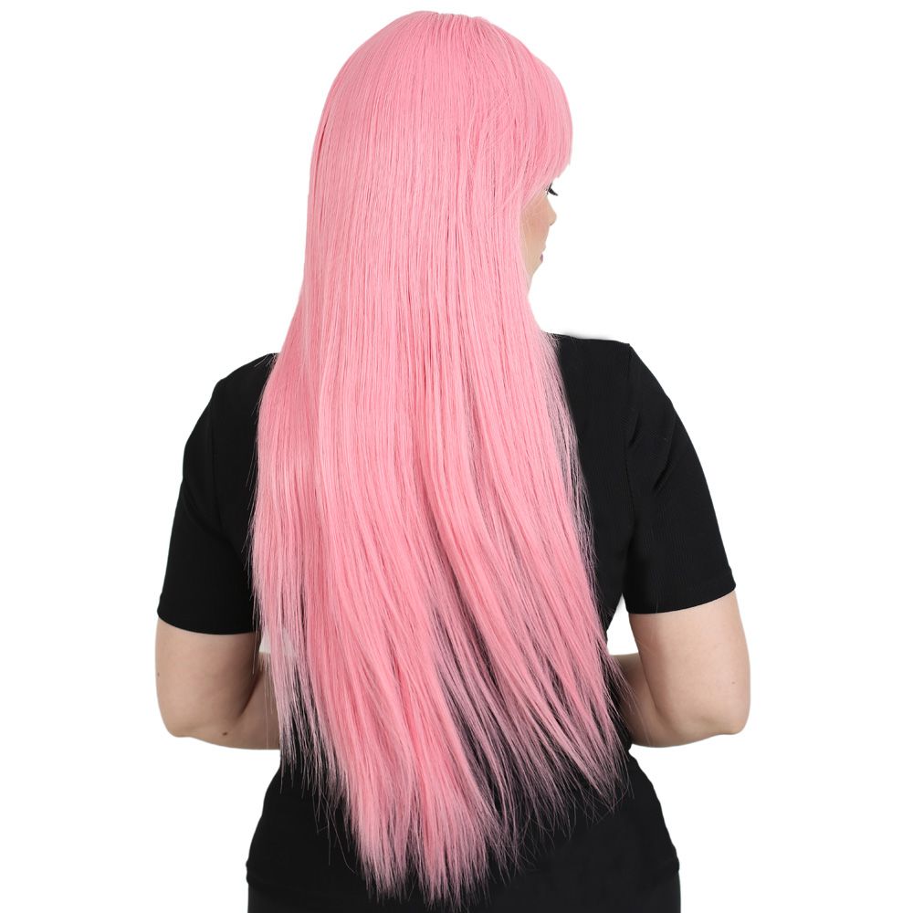 Uzun Kahküllü Fiber Sentetik Peruk - Şeker Pembesi