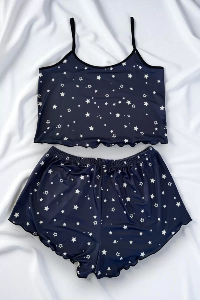 Yıldız Desenli Lacivert Şortlu Pijama Takımı